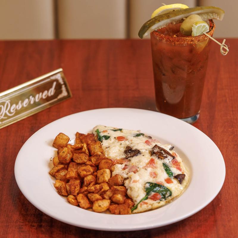 Egg whites, exotic mushrooms, tomatoes, spinach, gruyere cheese blend, side homestyle potatoes, side toast